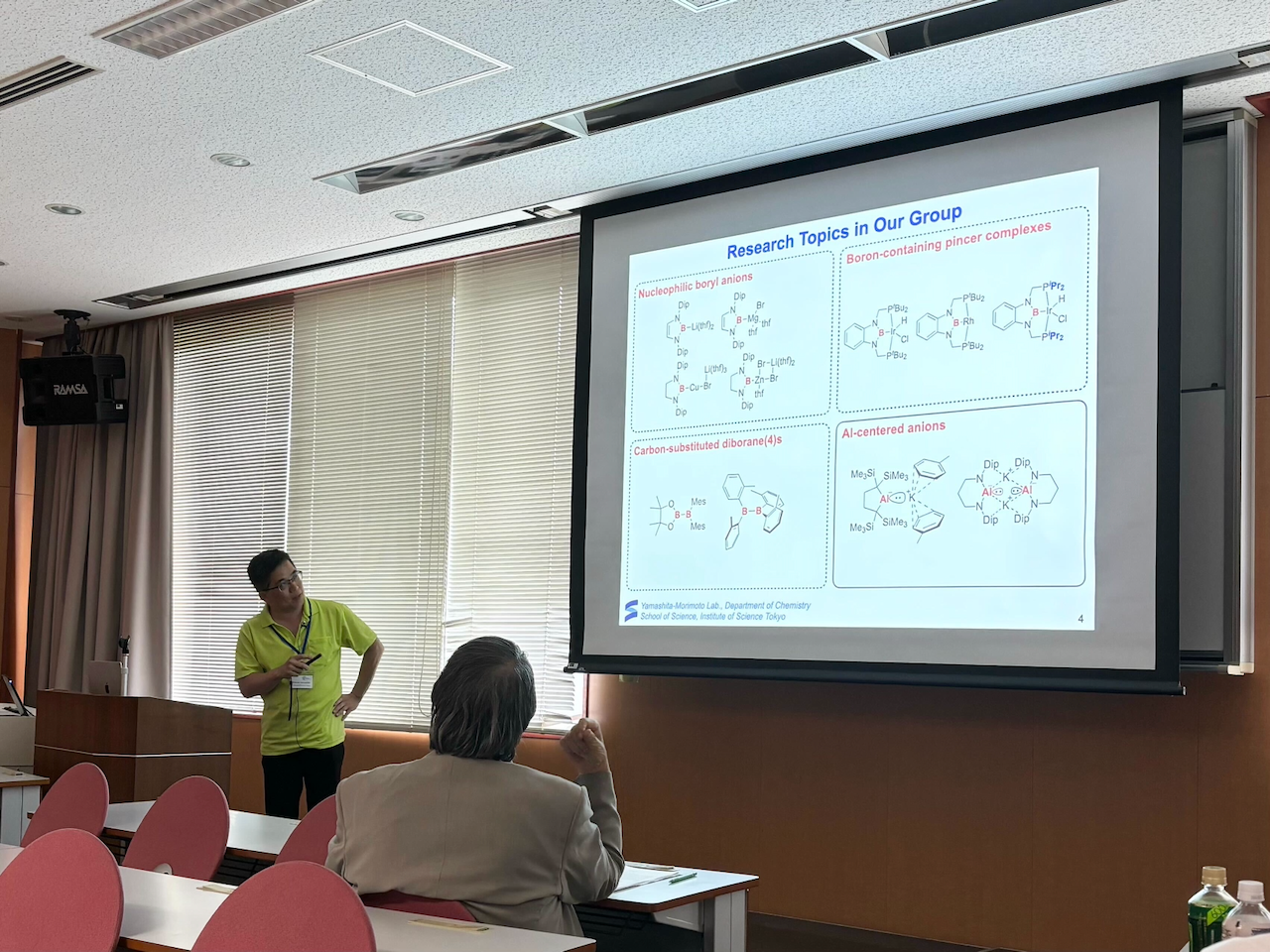 ZATSEPIN (PD), FELD (PD), DING (D3), and Ishihata (M2) presented their research and Prof. Yamashita gave an invited talk at International Main Group Element Chemistry Seminar 2025 (IMECS-2025) held at the University of Tsukuba. (2025.07.08)