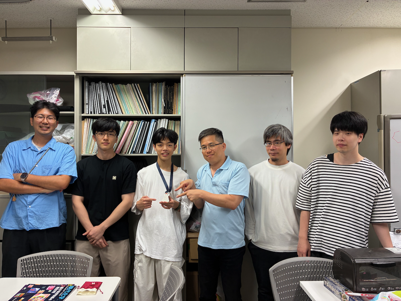 Mr. Shigeru Soda, who is a member of the national team for Chemistry Olympiad 2025, showed us his silver medal. We had a farewell party for Dr. Feld (PD). (2025.07.25)