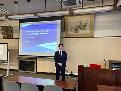 We organized the 5th Kanto Main Group Element Chemistry Seminar (KaMECS-2026). Hirose (M2) gave an oral talk. ZATSEPIN (PD), DING (PD), YAN (D3), YAMAMOTO (D3), PAN (D1), ISHIHATA (M2), YAMANOKUCHI (M2), KAWAWA (M1), and KAMIGUCHI (B4) gave a poster presentation. (2026.01.10)