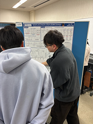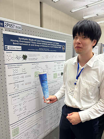 Zatsepin (PD), Ding (PD), and Ishihat (M2) presented their research at the 52nd Symposium on Main Group Element Chemistry at Tsukuba. (2025.12.06)