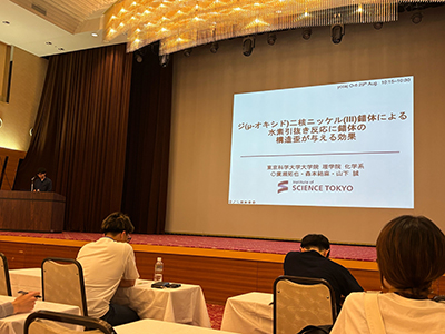 Ishihata (M2), Ding (PD), and Prof. Yamashita attended The 35th Symposium on Physical Organic Chemistry to present their research. (2025.09.11)